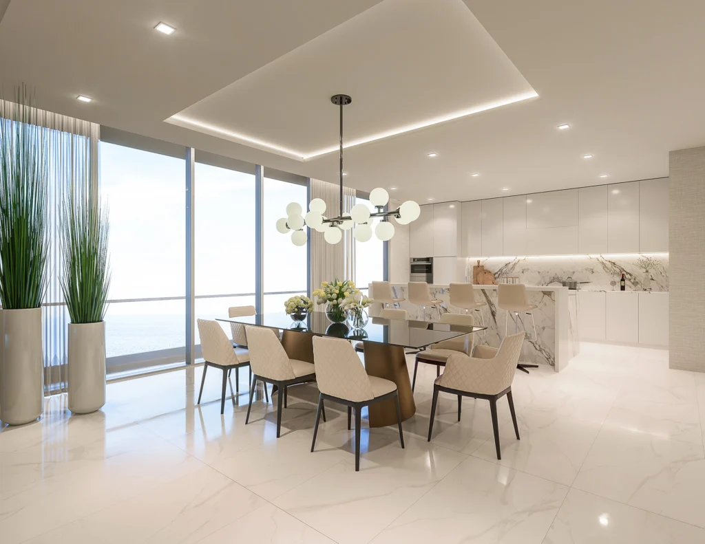 Avra’s residences are shaped by light, openness, and panoramic coastal views. Floor-to-ceiling glass, clean lines, and thoughtfully composed living spaces create an atmosphere that feels both contemporary and serene. Each residence is designed to frame views, enhance flow, and bring effortless sophistication to daily life.
